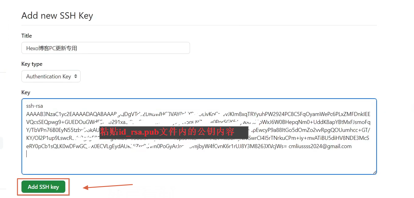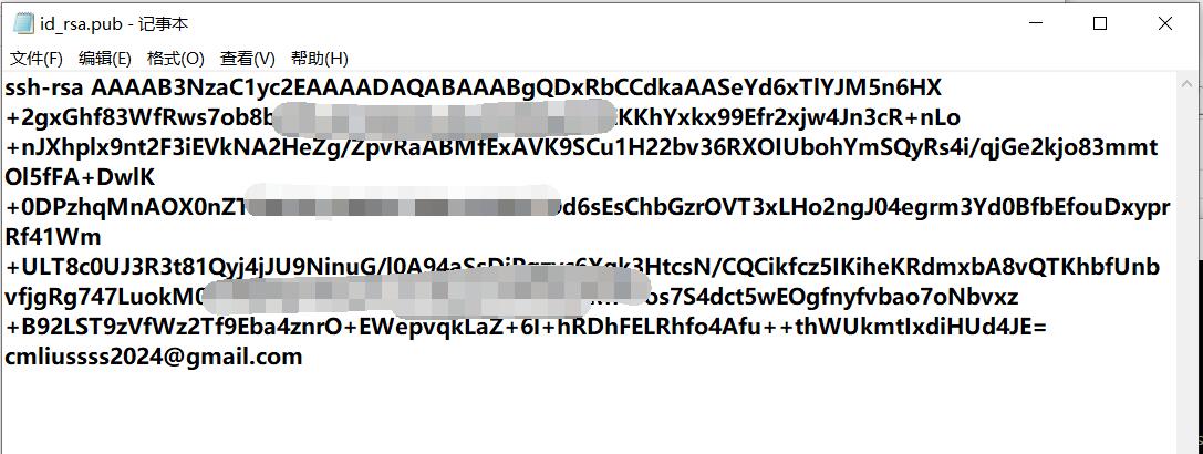 用记事本打开上述图片中的公钥id_rsa.pub,复制里面的内容,然后开始在github中配置ssh密钥。