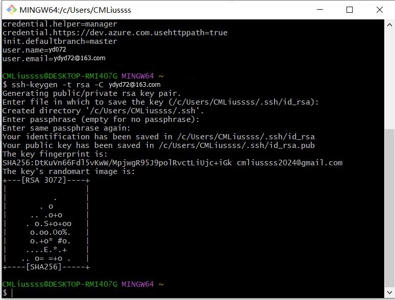 - 执行以下命令生成ssh公钥,此公钥用于你的计算机连接Github